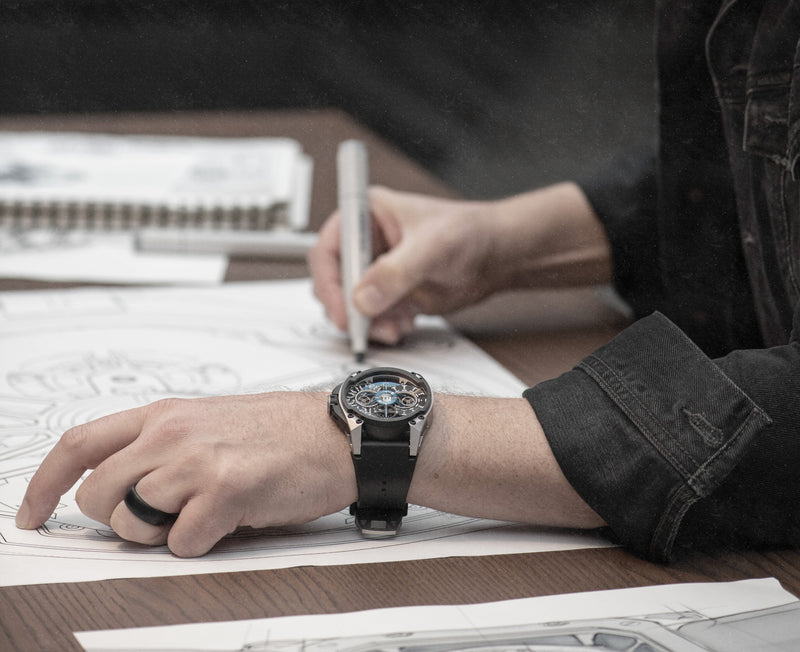DRIVEN BY THE RUSH OF DISCOVERY, we are on a mission to create a new relationship with time through mechanical art. The world of automotive advanced design and future vehicle development is the foundation of our creative process allowing us to realize the most unique of timepieces. Our creations are for those passionate few, those who believe in zero limits.