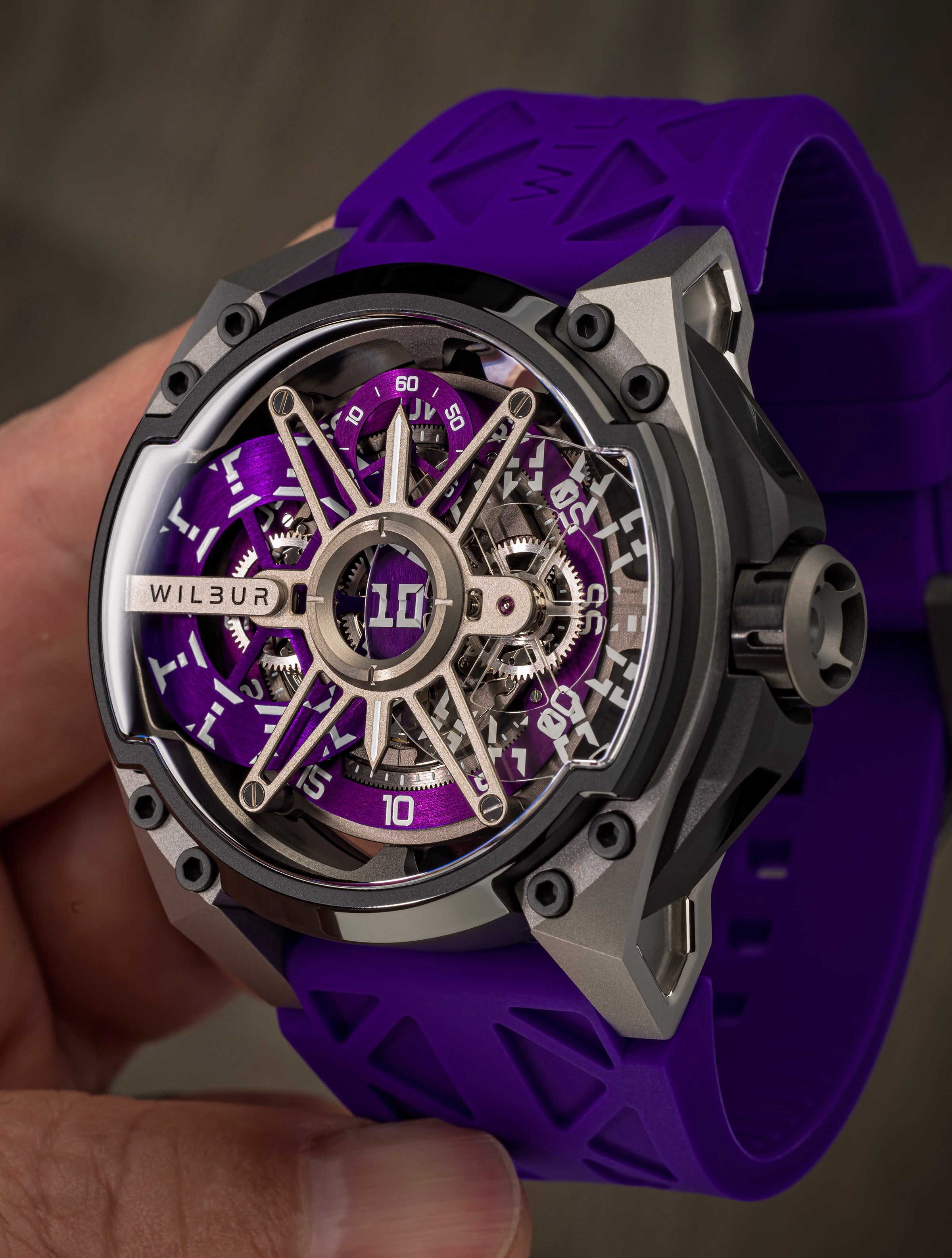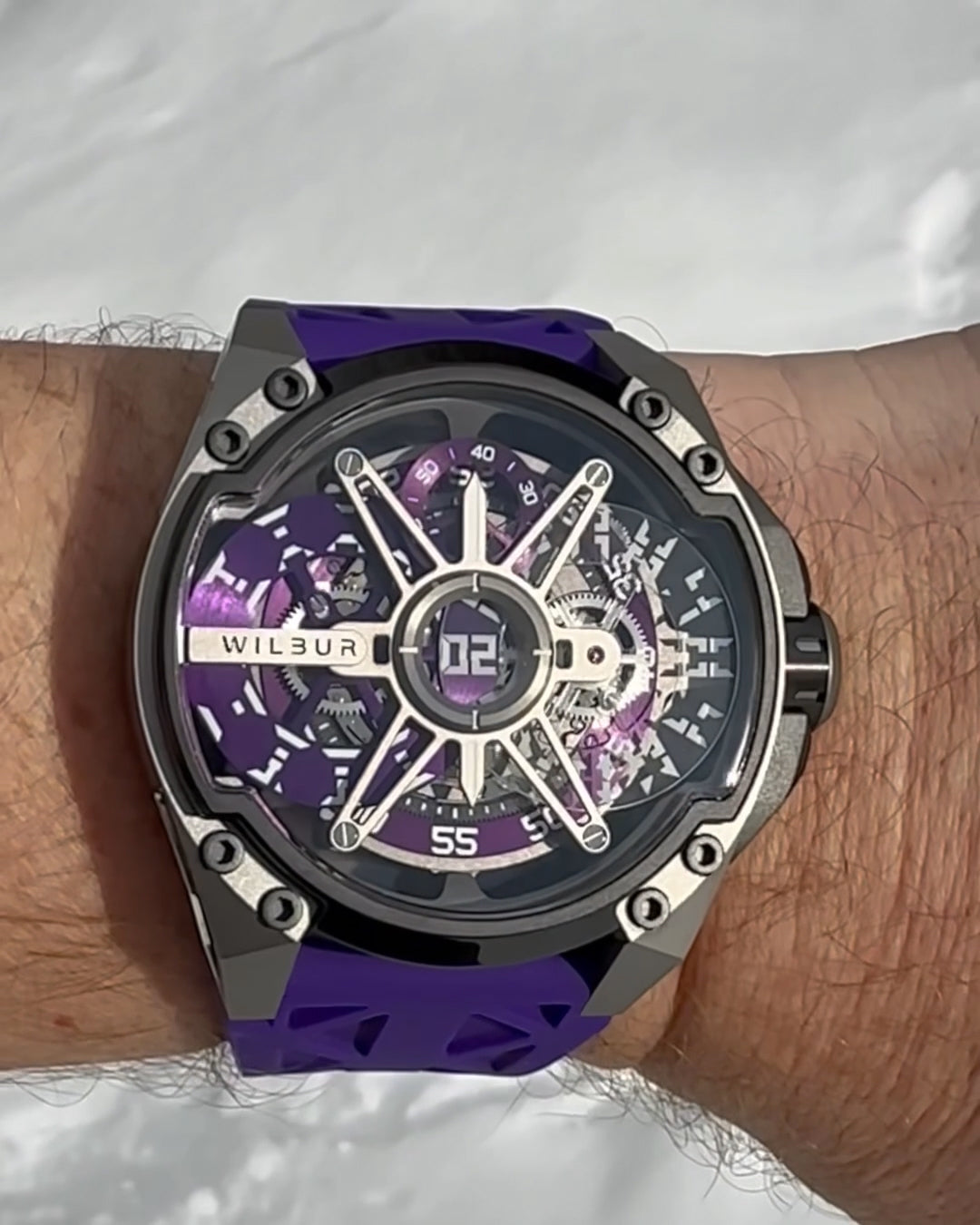 The automatic Wilbur Engine One Jump-Hour movement is suspended in the case through a patent-pending space frame that loves vibrations. This space-age architecture is also stable and reliable as the result of years of R&D and the rare obsession of Jason Wilbur.